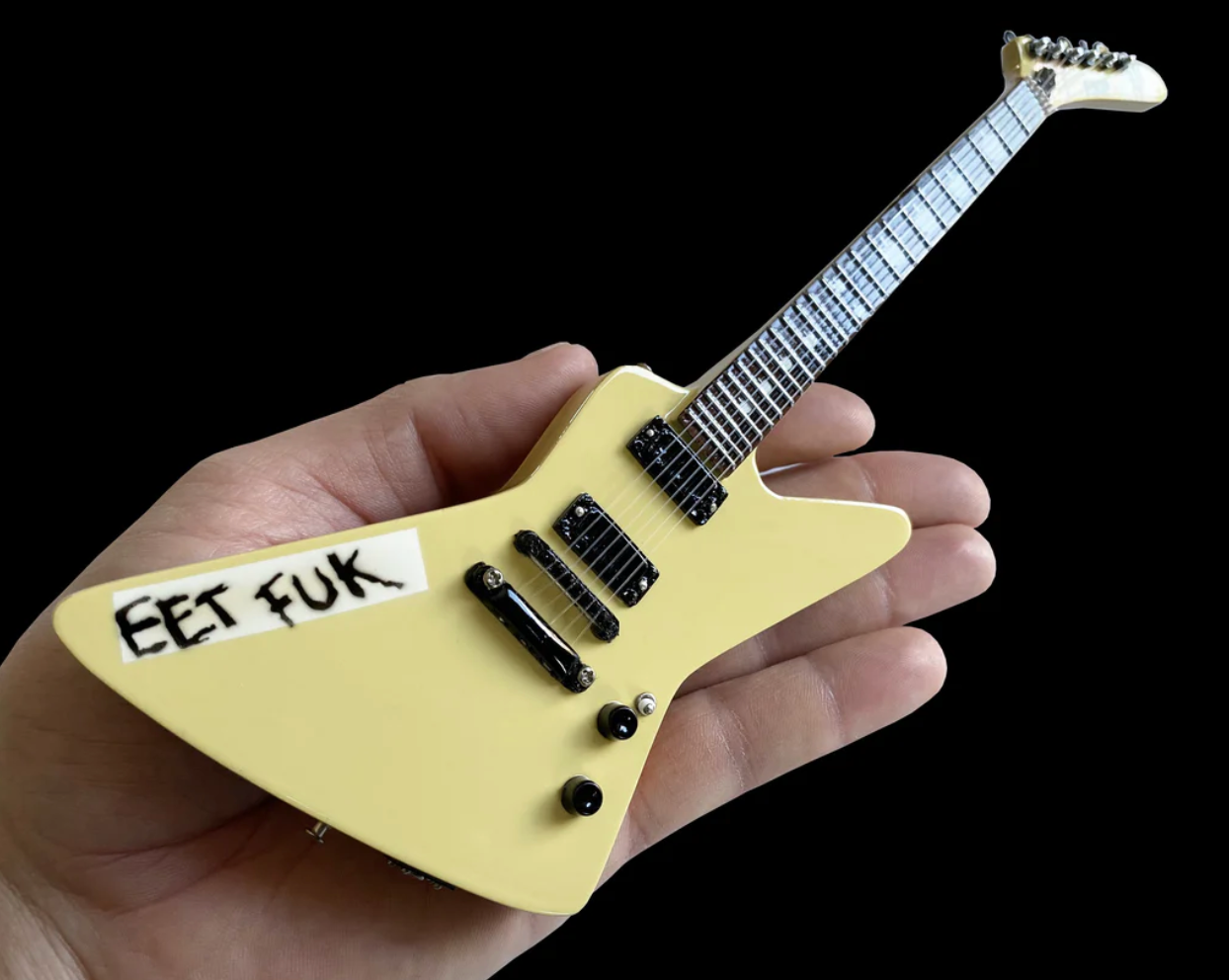 This miniature “eet fuk” is stunning with vintage and original details just like the original 1987 guitar. Simply a must have for James Hetfield fans everywhere.